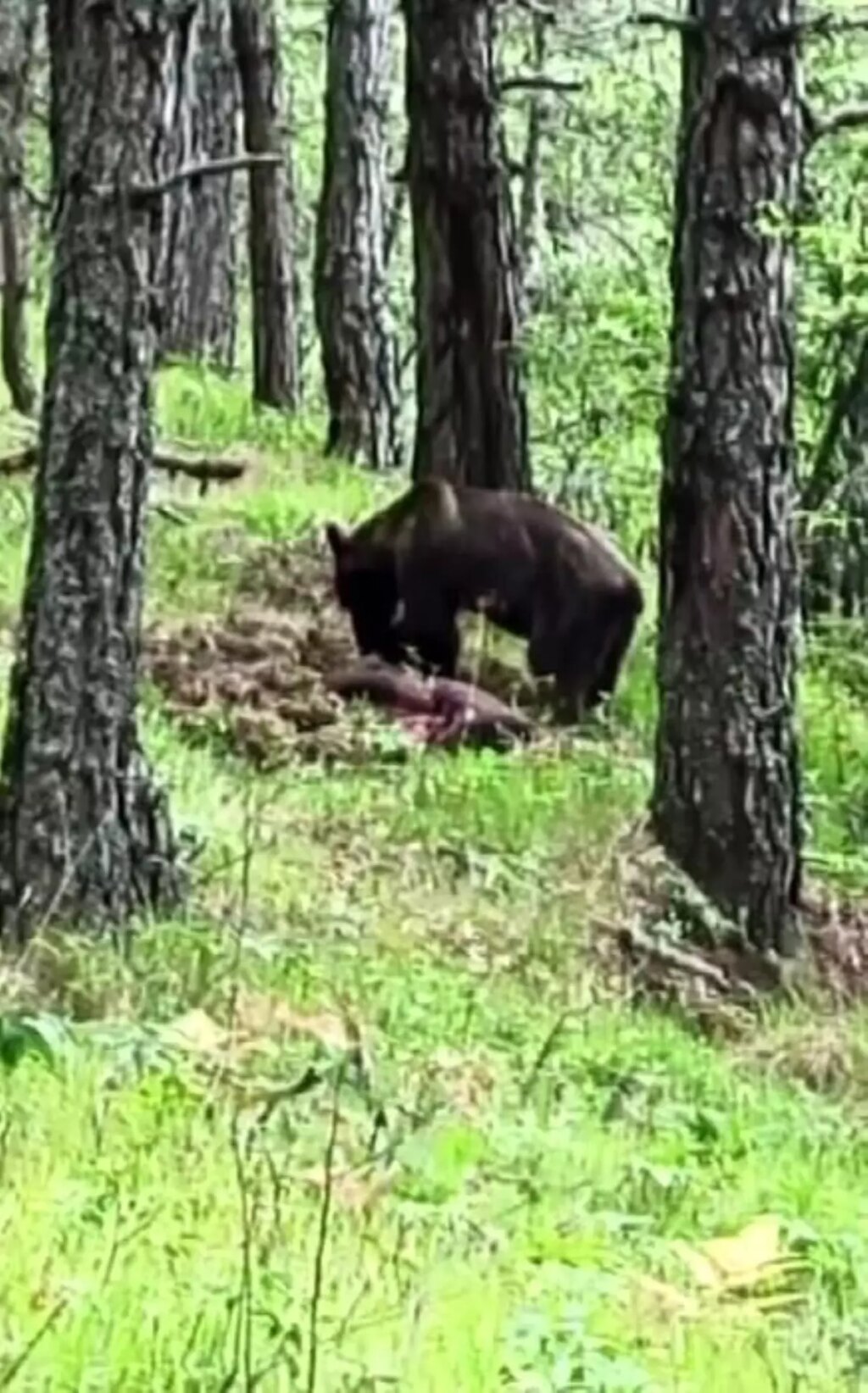 Daday ilçesi Selalmaz köyünde mantar toplamak için ormana giden Anahtar Parti Daday İlçe Lideri Serkan Pehlivan, ayı seslerini duydu. Seslere gerçek yönelen Pehlivan, ayının avladığı yaban domuzunu yediğini ve saklamak için toprağa gömdüğünü gördü. Pehlivan, o anları cep telefonuyla görüntüledi.