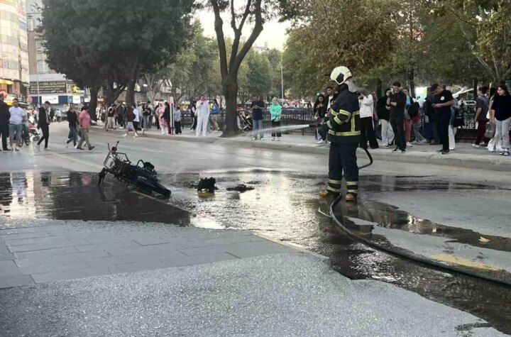Kastamonu'nun Aktekke Mahallesi'nde seyir halindeyken yangın çıkan motosiklet, itfaiye takımlarının müdahalesiyle söndürüldü. Motosiklet yangın...